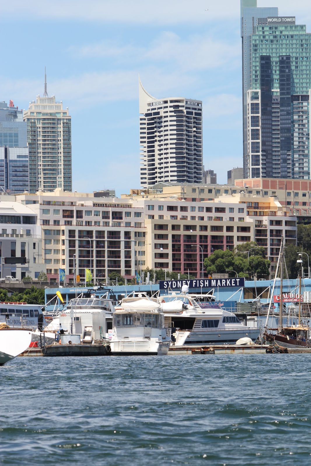 We zoomed over in our little boat, bouncing along the tops of the swell that the wind and clouds and ferries created in the harbour, much to my consternation. All morning I kept looking out the window at the trees blowing sideways and the heavy grey skies, saying “are you sure this is a good idea?”. But my dearly beloved, who has to put up with much wimpyness from me, was firm in his assertion that it would be okay and we stuck to the edges and stayed away from the main channel and of course it was fine. We even stopped over at the Fish Market for lunch on the way.