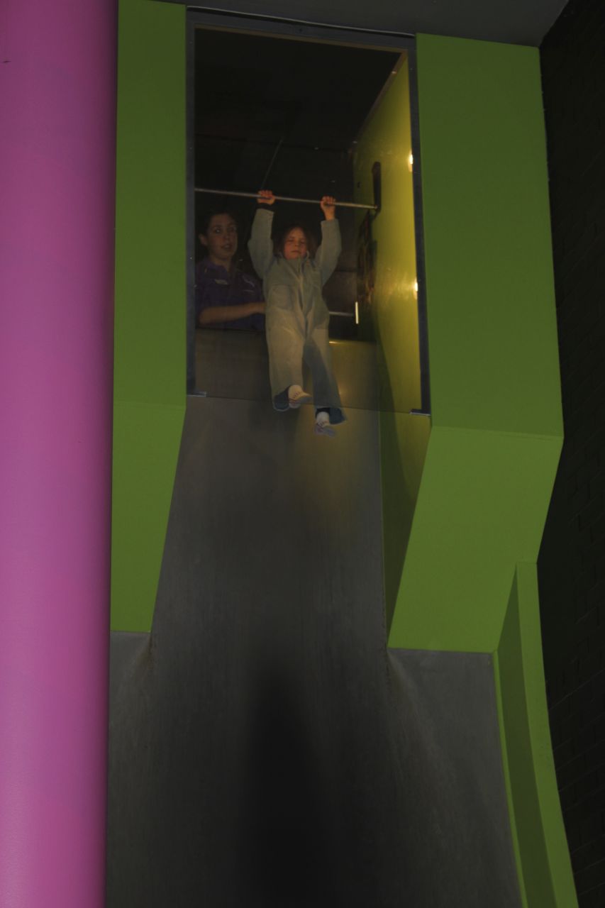 It is a bright and spacious building, cleverly laid out and jam-packed full of hands on experiments, shows and displays. The “vertical drop” got the most attention from my small people, in particular my daughter seemed to love dangling over an abyss and letting go to experience “free falling”. Watching neon scarves zoot around a wind tunnel maze and shoot out in unexpected places seemed to grab their attention too. My son was especially entranced with “The Gravitram” and spent ages staring at the pool balls hurtling along their wire tracks.