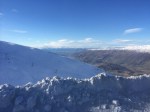 But then, I pause for a moment to readjust the skis dangling precariously over my shoulder and happen to glance up, and the view takes my breath away. Despite the wind that has buffeted us senseless on the mountaintop, the day is clear, and beneath the blue sky, snow covered mountains stretch to the horizon. There is a black run piste below me, virginal white and thick with powder, and in the distance, in the valley nestled between dramatic and spectacular peaks, I can see Lake Wanaka as still and blue as a glacier.