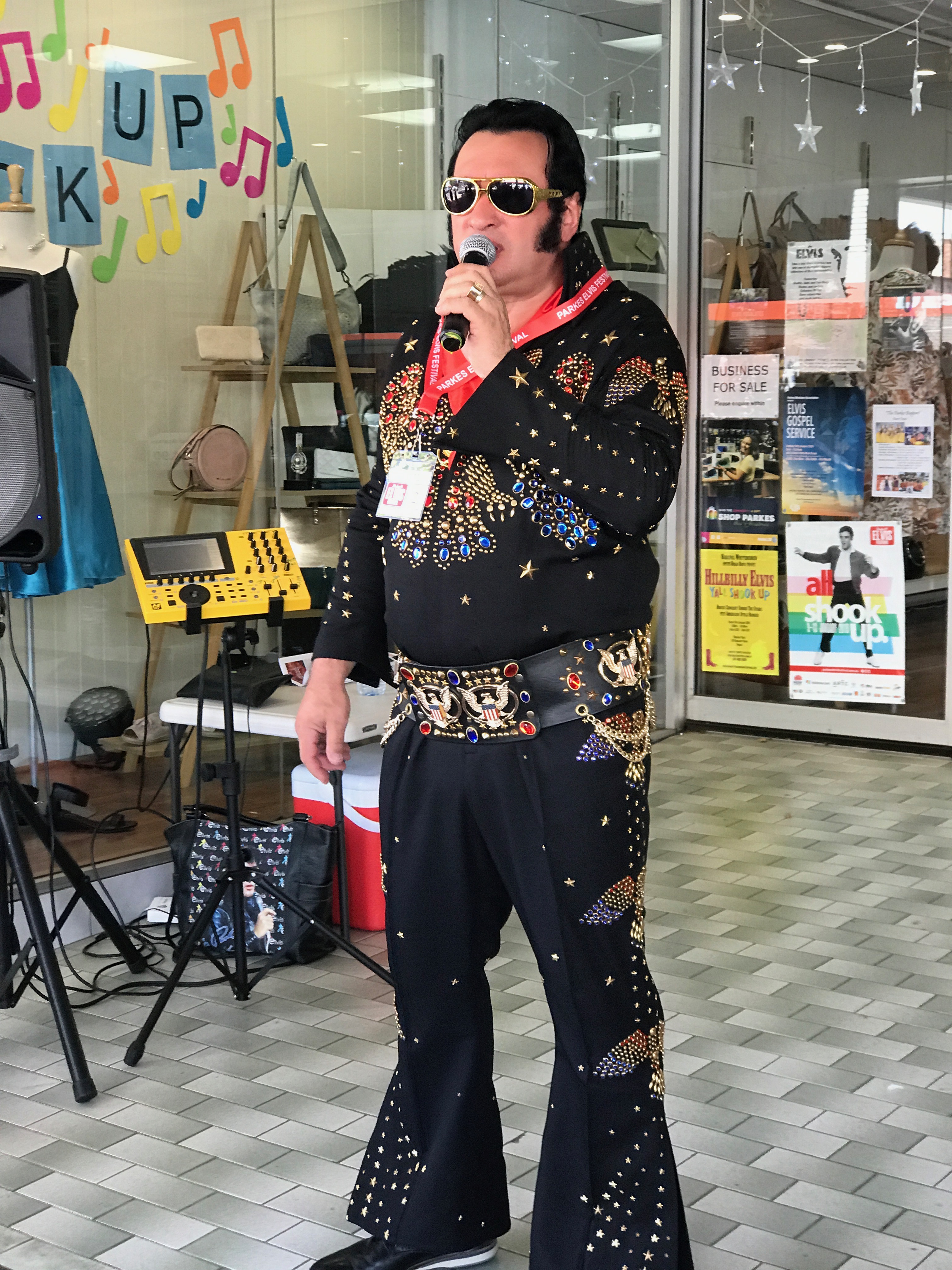 By the time we’ve been in town for two days, we’ve seen all manner of Elvis impersonators. Young and old, fat and thin. We’ve experienced the buskers, the pub-players and the in-it-to-win-it professionals. What a strange life, I muse, living forever in the shadow of greatness. On the road, never quite yourself, never an original. Then again, perhaps it is no more strange an existence than doing market research for a living, and perhaps in that sense, it is more authentic because it comes from passion.