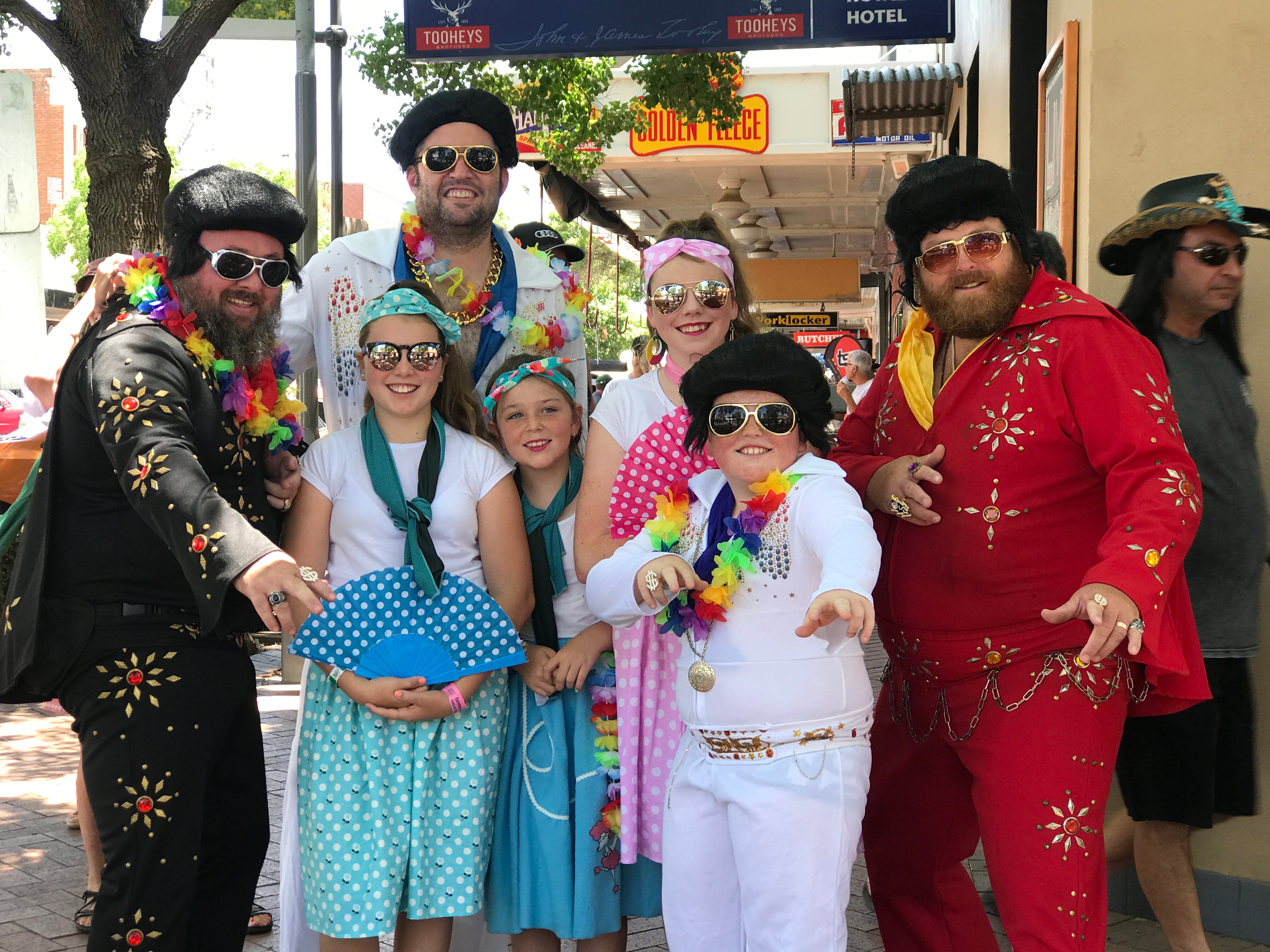 There are three pubs offering to quench our thirst after the long drive out from Sydney, and we err with our first choice which provided karaoke and wine in a champagne glass. However, we soon stumble into the action at The Cambridge Hotel. Our very first Elvis impersonator is up on the stage, and the crowd is pumped, rocking and rolling like they were there the first time round. Friends are gathered in matching Elvis paraphernalia and someone has even gone to the trouble of shaving ELVIS into his hair. It is hysterical, and enchanting, and we are soon joining in the antics on the dance floor. The Memphis Cowboys steal the show by not being impersonators at all, but rather excellently engaging musicians rocking out their own version of the songs. I suspect they must be on their way to the Tamworth Country Music festival next. We dance extravagantly, without any expertise nor embarrassment. It’s that sort of place.