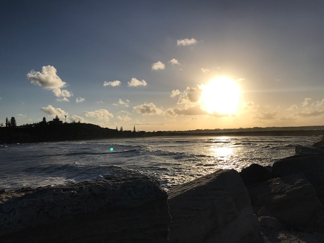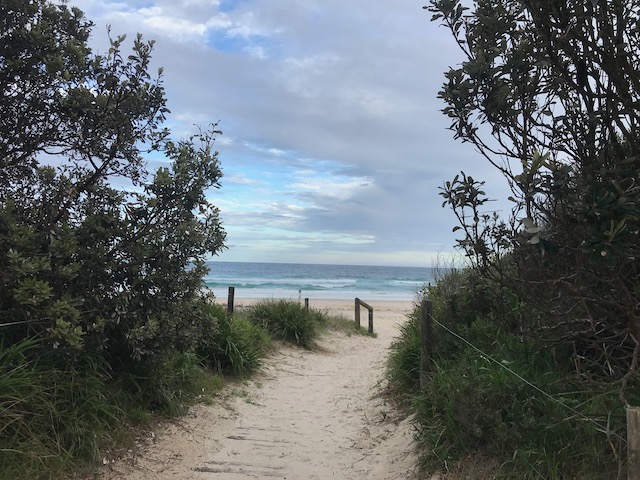 Our meandering takes us to coffee conversations about careers and futures with our nearly adult children in a cute restaurant in Kempsie, before a walk and sort of swim on yet another endless beach.The sea is brown and bitty, full of the after effects of last month’s floods, but the walk is refreshing and watching the kite surfers mesmerizing.