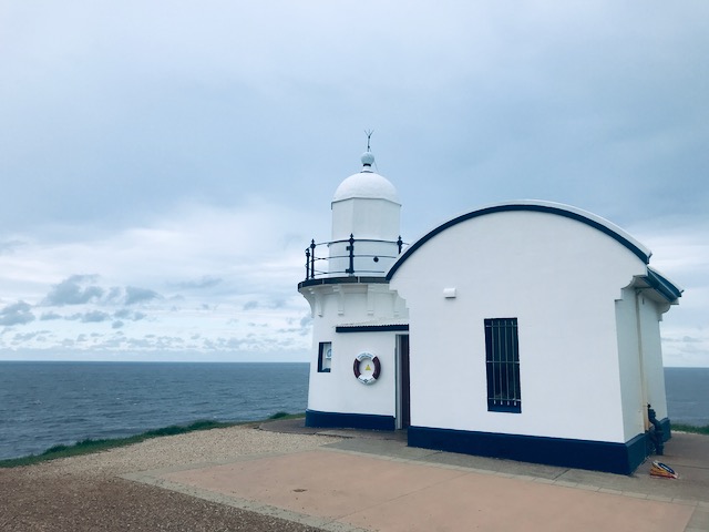 We have reached apogee in our travels and pivot around Fingal Head lighthouse to trace our way back home. The reason for trekking to this particular exposed rocky finger of earth stretching into the sea is to see dolphins and we do – in the distance, a large pod of fun seekers surfing the waves. We are still staring into the misty tumultuous waters when a squall hits us and we are drenched within seconds and having to do battle with a wind that would blow us right off the cliff tops.