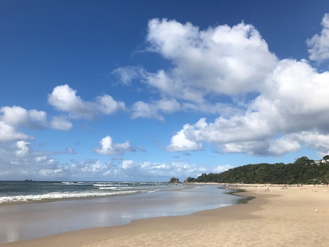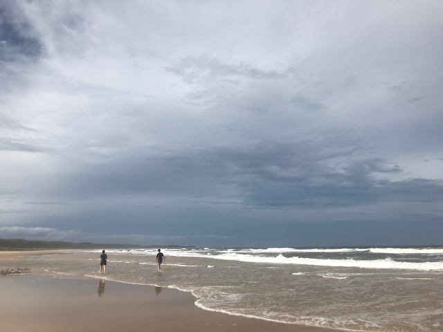 That was until we arrive into the gorgeous beach side town of Kingscliff and set up home about as close to the beach as you can get without being in a boat. The weather remains dismal, and Mike and I get rained on yet again while we wander the high street, but the sound of the waves and the wide expanse of soft sand, the live music floating over the night air and the concrete slab we are parked on (and therefore a glorious lack of mud!) makes me feel very happy indeed!