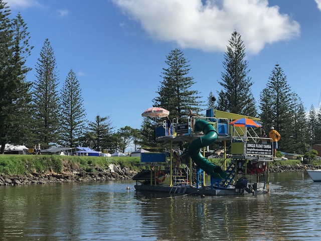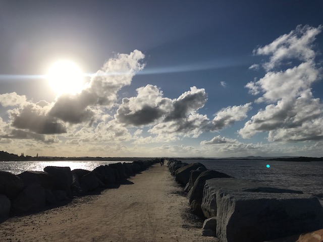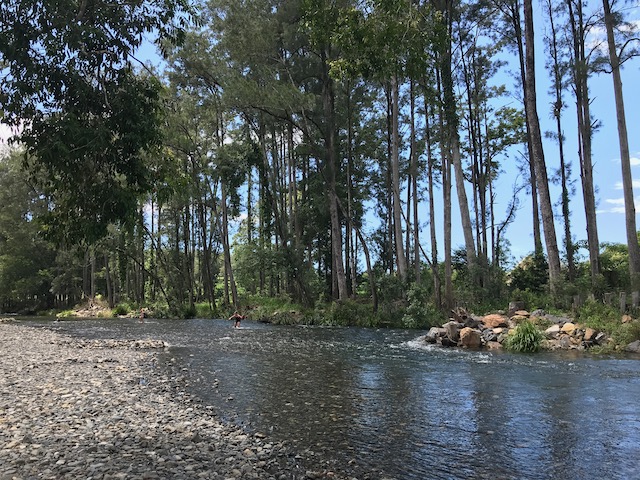 We hike up the hill again and meander around to the lighthouse – our children learn the word phallic in this regard – and down again to another beach and alongside the Clarence River estuary. Matt spends the afternoon jumping off a cool jungle boat, and we walk down the breakwater for evening drinks in the setting sun. Dolphins play in the waves and we catch sight of them now and again between the fishing boats heading out of the river and into the roiling sea. The night sky is adorned with stars as we collapse into bed exhausted from yet more walking! This holiday is exhausting us – we may need to return to work for a rest.