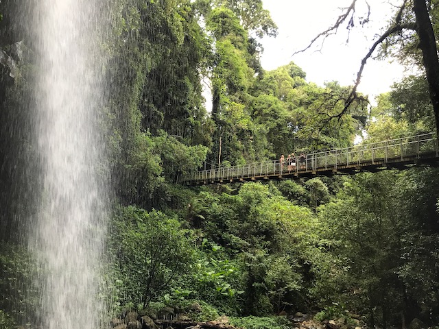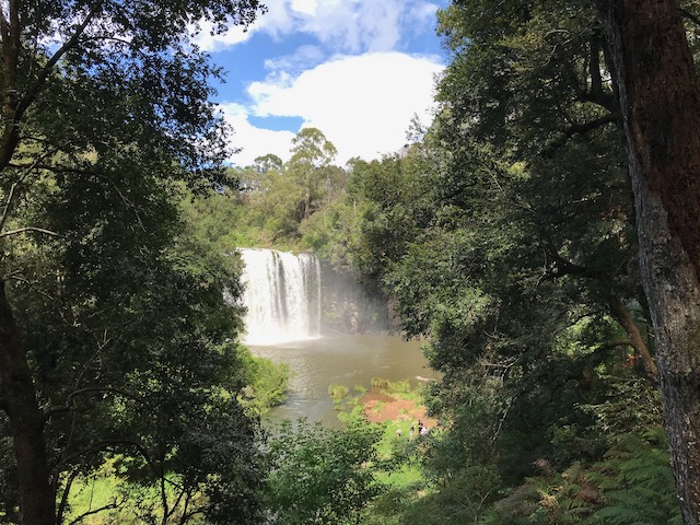 We push the bus up the mountain into panoramic vistas of fertile greenery, and find ourselves agog with the sheer magnificence of the countryside. It is Waterfall Way we are trundling along and so it is unsurprising to find ourselves in the company of several torrents of water cascading down the steep incline.