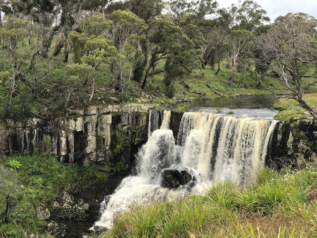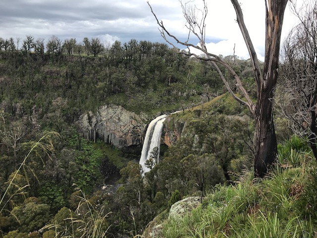 We also trek out to Ebor for another waterfall. The languid, barely noticeable Guy Fawkes (why is this patch of brown water named after some British terrorist?) river tumbles with astonishing force over a staggeringly sheer cliff face – not once, but twice – a sort of double layer cake of a waterfall. There is a lot of water on waterfall way, but last year’s fires are in evidence in the closed off lookouts burnt to a crisp and the blackened trees which make their way deep into the valley and up the other side.