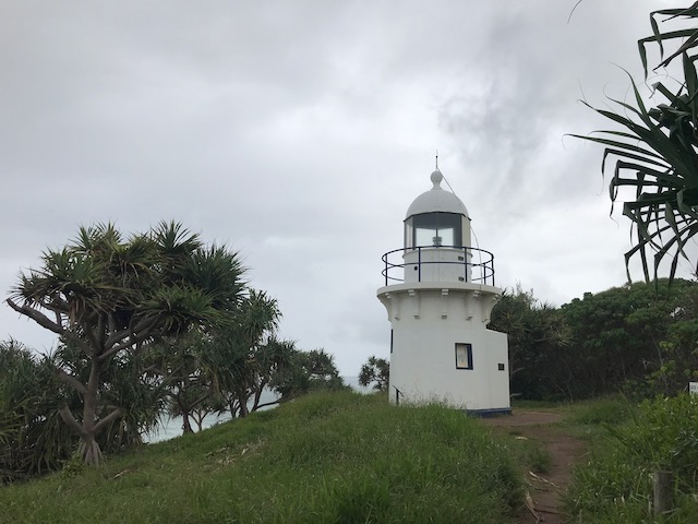 We travel over rivers swollen and brown with rain to have tea at a lookout where the effect of the runoff is demarcated in the sea. The rain returns as we cross Little Beach and make our way to Taking Point lighthouse near Port Macquarie. As the rain pummels down, we wrap ourselves into our Campervan with wine and spaghetti Bolognese and hope we don’t get bogged in tomorrow.