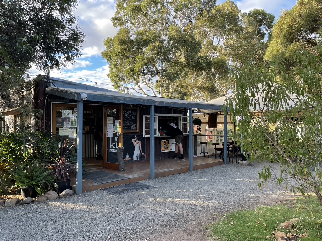 Because the gin place closes early and dinner is a while away yet, we stop at the brewery. It’s a tin shed, with leather sofas and a roaring fire, and bar seating in front of wide windows that frame a stunning view across the countryside. We plonk ourselves down in front of it, wine and beer in hand, and fall into conversation with neighbouring patrons from Melbourne. We like it so much we come back the next night too.