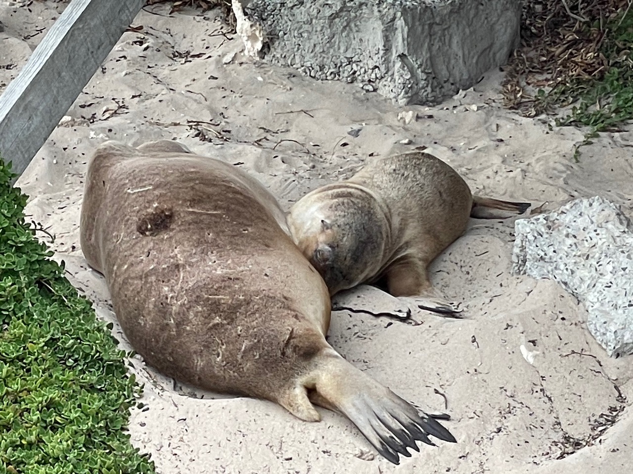 Finally we wrap up our touristy day with a quick stop to Seal Bay. And this is a highlight on a highlight filled day. Do not skip this! We haven’t booked a tour, but the boardwalk takes us around the breeding grounds where mums and babies lie in paired cocoons. Baby seals are about the cutest things you can ever hope to see in your life. They are playful, curious, social and lost babies cry with a heart rending plea that sets my own mum hormones alight. I’m in awe of people who dedicate their life to conservation work like this.