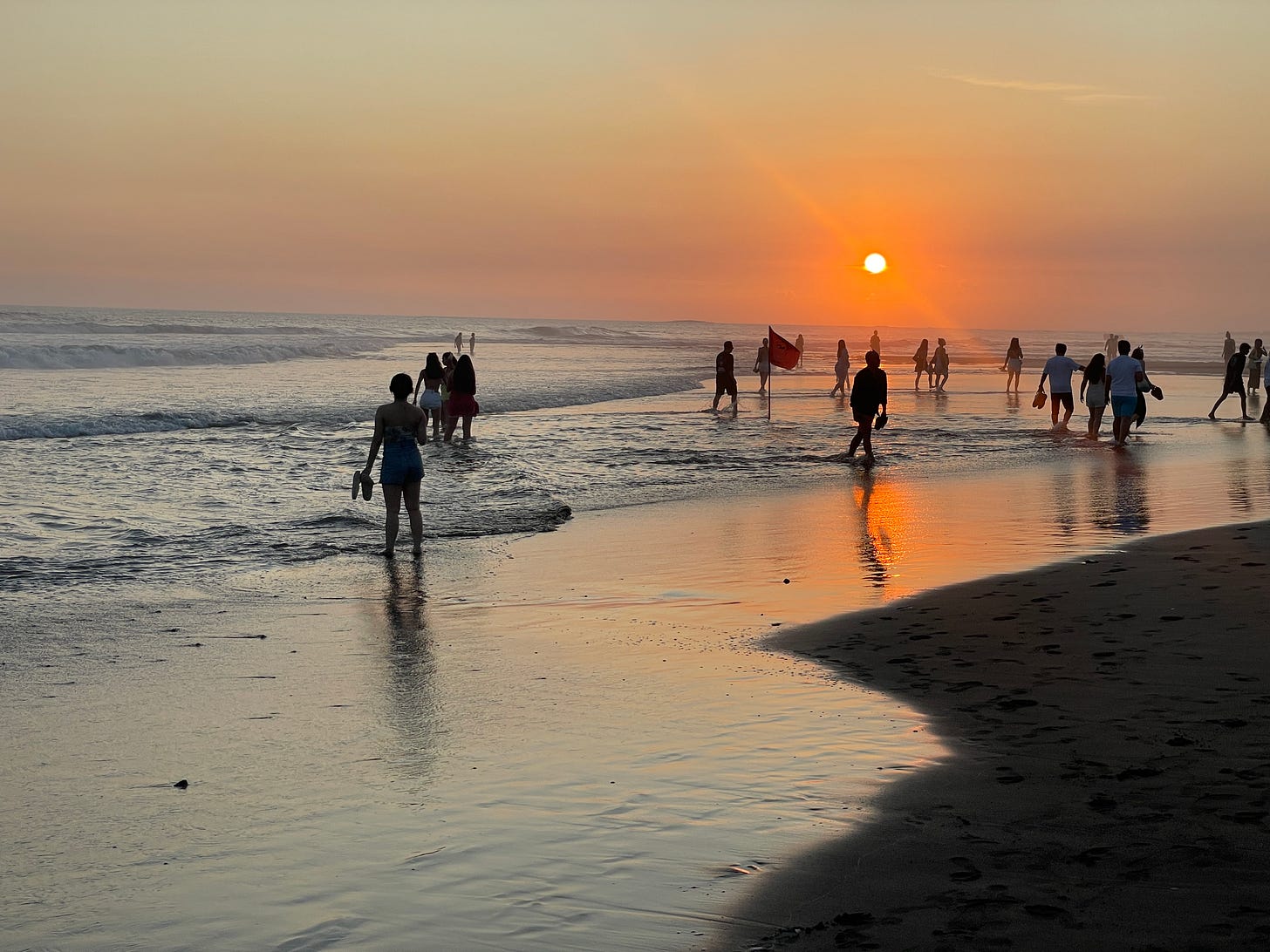 Our little hotel villa thing is a hop and a skip from the beach, and so that is what we do. Laze by the pool. Walk on the beach whilst surfers catch waves. Eat food at less than half of what it would cost in Sydney. We sleep a lot and watch the sun go down over the sea from beanbags with cocktails in hand.